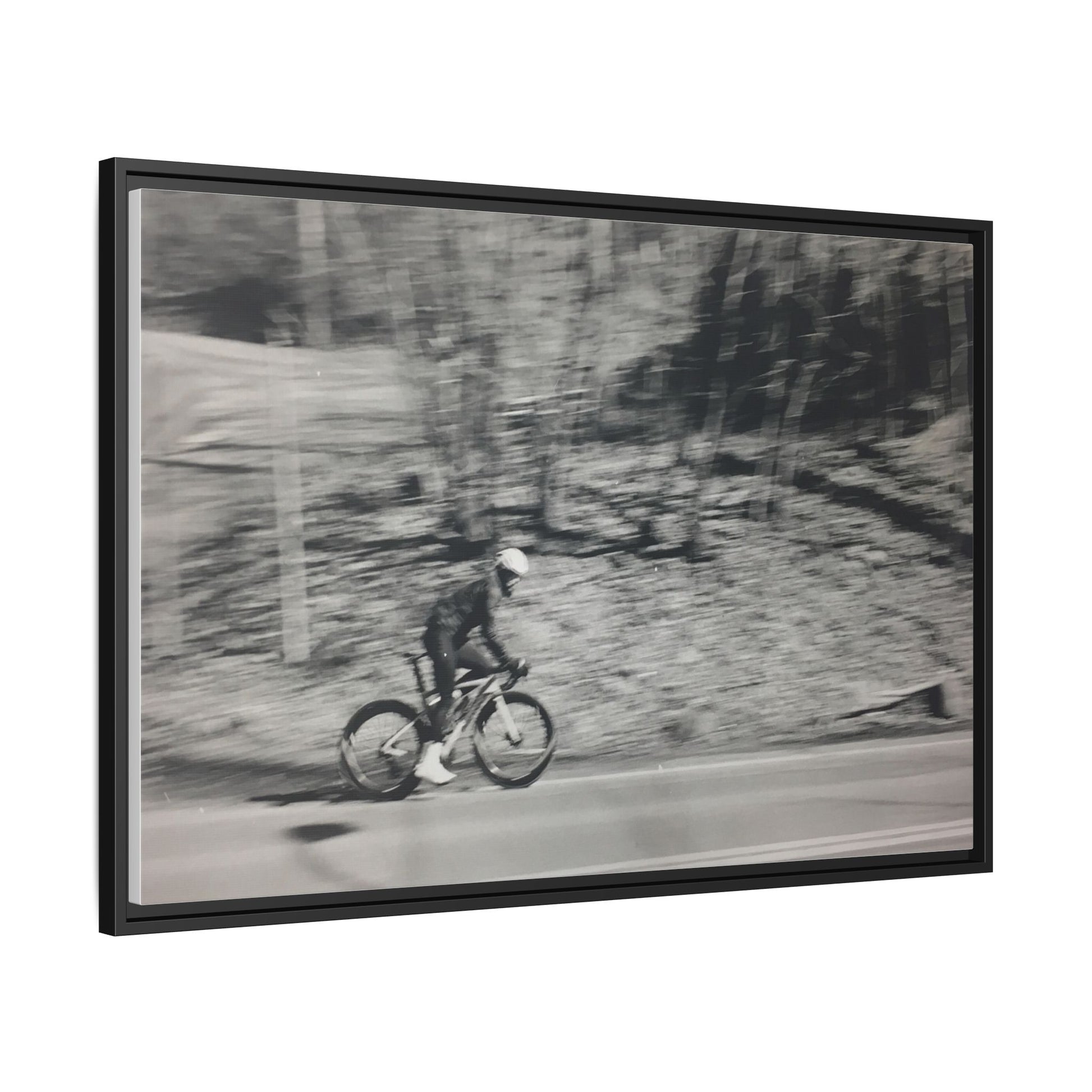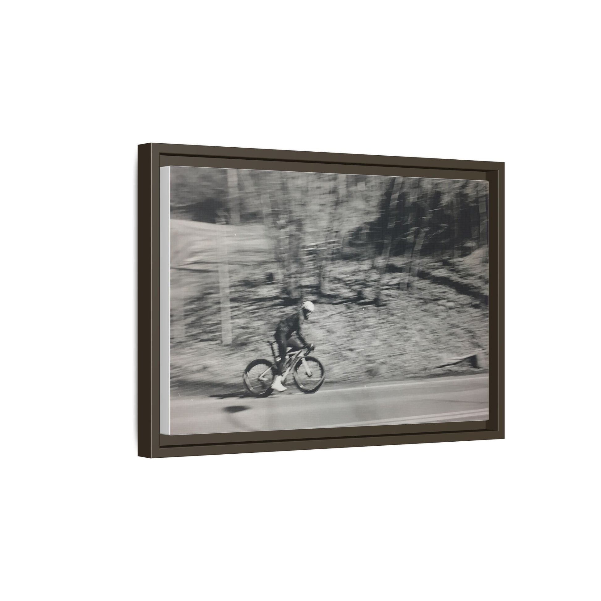 Framed Matte Canvas Print — Vintage Cyclist Black & White Photo